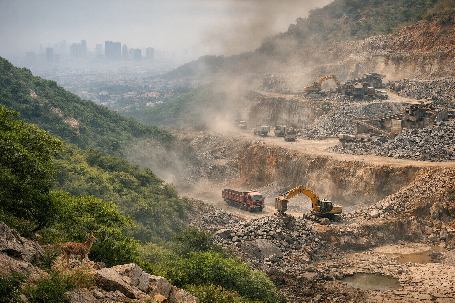 പതിറ്റാണ്ടുകളായി, ആരവല്ലി ബെൽറ്റ് പരിസ്ഥിതി പ്രവർത്തകർക്കും ഖനന മാഫിയകൾക്കും ഇടയിലുള്ള ഒരു തർക്ക പ്രശ്നമായിരുന്നു. കോടതി ഉത്തരവുകളും പരിസ്ഥിതി നിരോധനങ്ങളും ഉണ്ടായിരുന്നിട്ടും മണൽ, quartzite, കല്ല് എന്നിവയുടെ അനധികൃത ഖനനം തുടർന്നുകൊണ്ടിരുന്നു. കോൺട്രാക്ടർമാർ, രാഷ്ട്രീയ , ഭരണപരമായ കൂട്ടുകെട്ട് അവിശുദ്ധ ബന്ധം ആണ് ഈ നിയമവിരുദ്ധ പ്രവർത്തനങ്ങൾ തുടരാൻ കാരണം എന്നത് രഹസ്യമായ പരസ്യ യാഥാർഥ്യമാണ്.